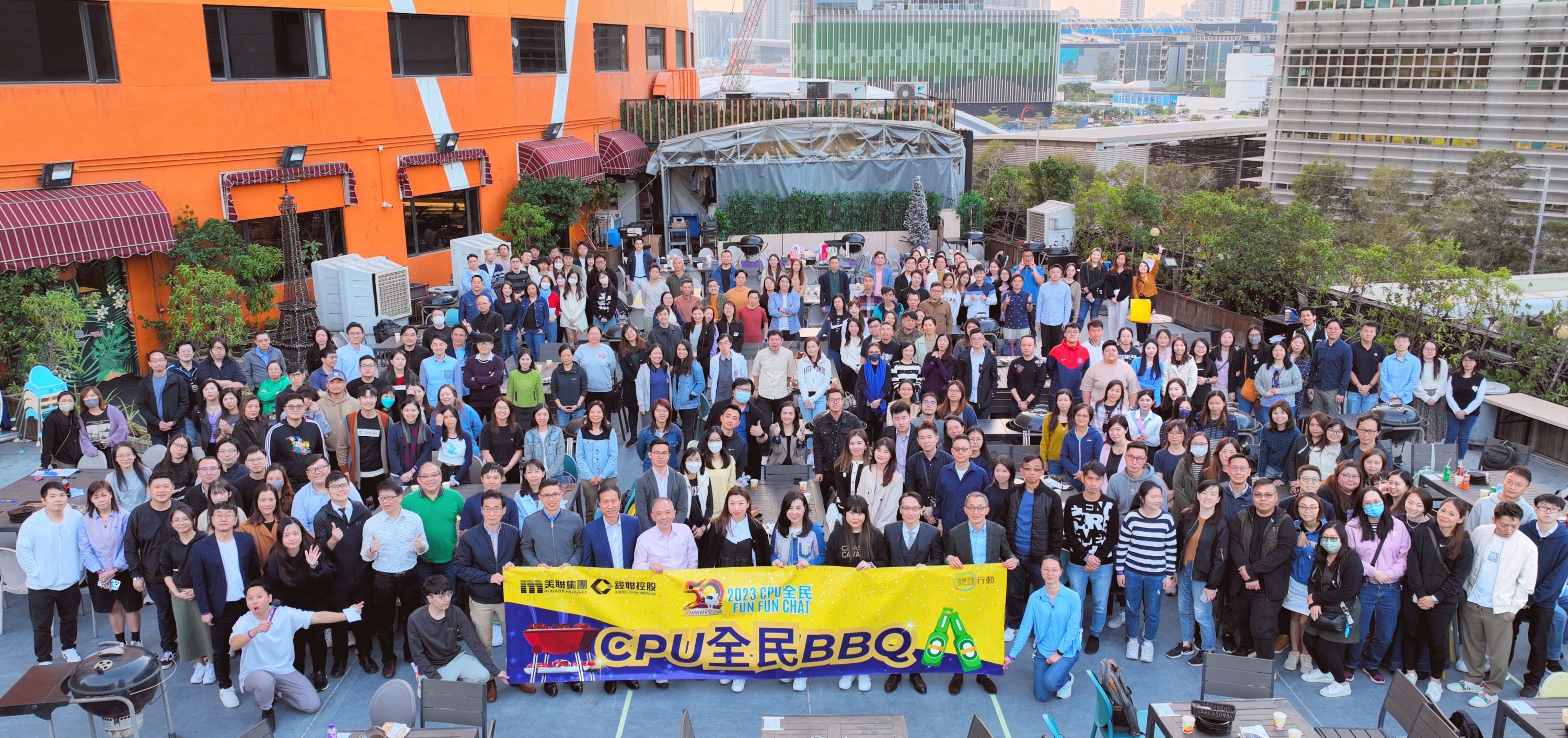 美联集团(1200)向来重视及关爱员工,致力打造开放欢乐的工作氛围,於日前特别为一众中央专业部门(CPU)员工举行「CPU FUN FUN CHAT」交流会暨年度聚餐「CPU全民BBQ」两大活动。集团副主席黄静怡联袂众管理层与同事分享公司发展,公布最新的员工福利,并与众同乐,一起以BBQ提早迎圣诞佳节,各部门同事齐心出席,展现高昂士气。