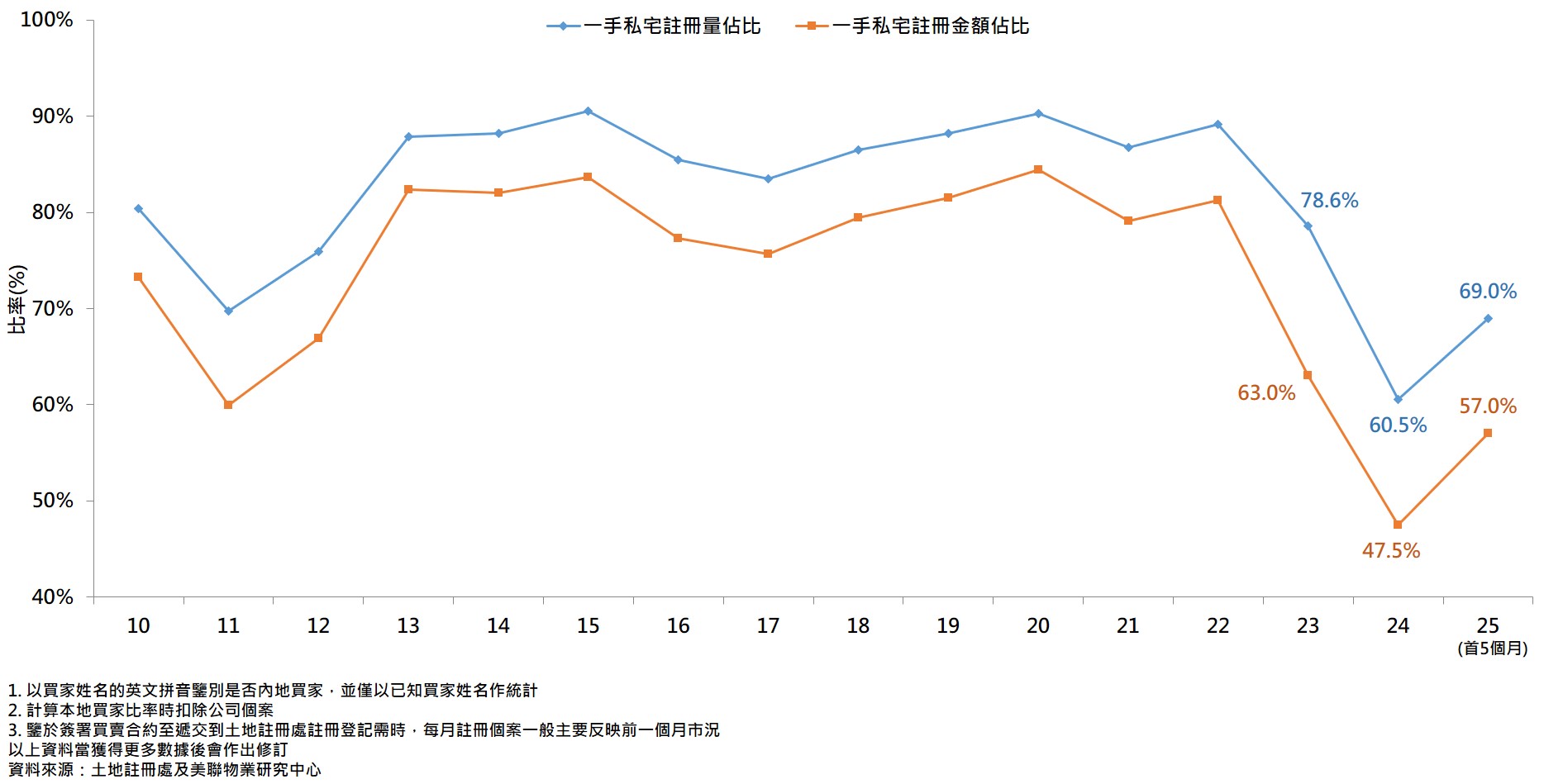 图二:本地买家占个人买家於香港楼市一手私宅注册量比率