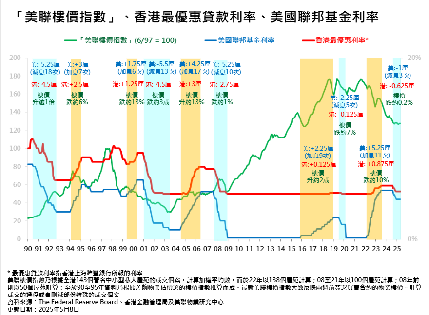 . 本港最优惠利率减息0.875厘 . 美国减息期间,本港楼价(截至2025年12月8日)升约4.5% -